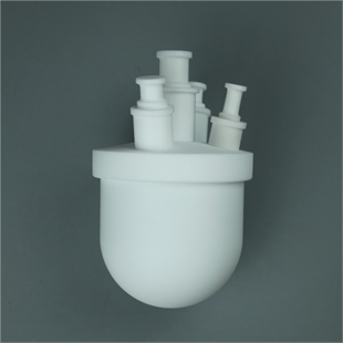 1、四氟烧瓶有单颈、三颈和四颈,17、19和24等标准口,每个标准口配有塞子。