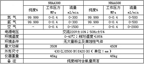 NHAA500型氮氢空发生器主要技术参数: