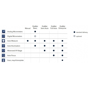DiaMet测量系统可以完全控制硬度计并据实际使用情况设置不同的自动化级别,所有硬度测试的相关参数包括力值,保持时间,焦距,以及硬度值转换都非常容易设置。可以在极少的人为操作的情况下自动完成序列程序的运行,包括自动测试,自动对焦,自动测量,自动生成报告等。