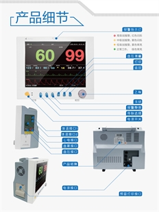 4、具备药物浓度分析、呼吸氧合图、起搏分析等功能、脉搏调整音