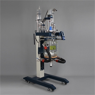 GRL升降型双层玻璃反应釜是在基础的玻璃反应釜的结构上,优化了框架。